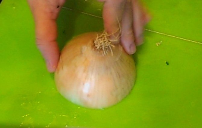 Once the root or tip is removed, you'll be able to easily remove the paper-thin skin from the onion.