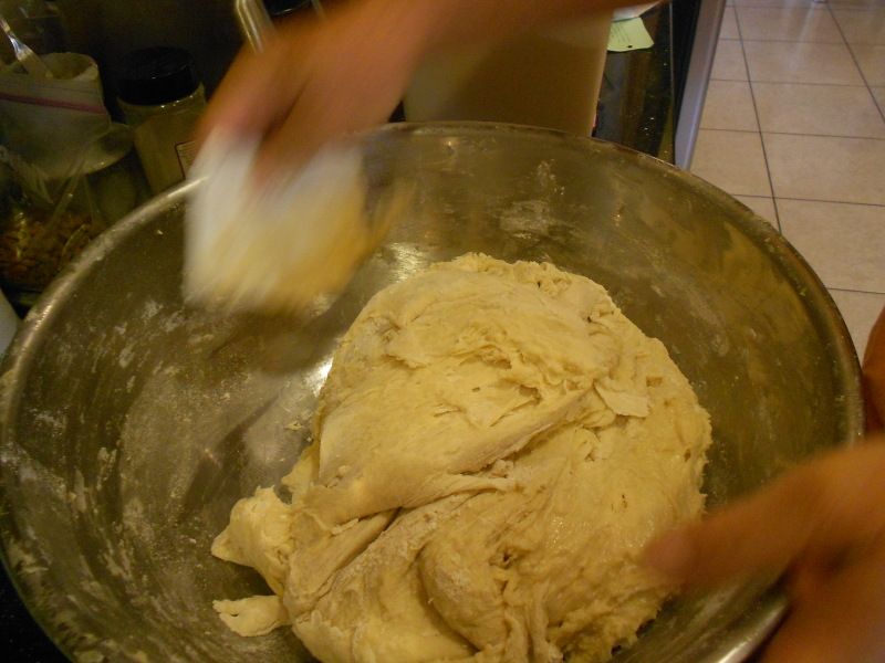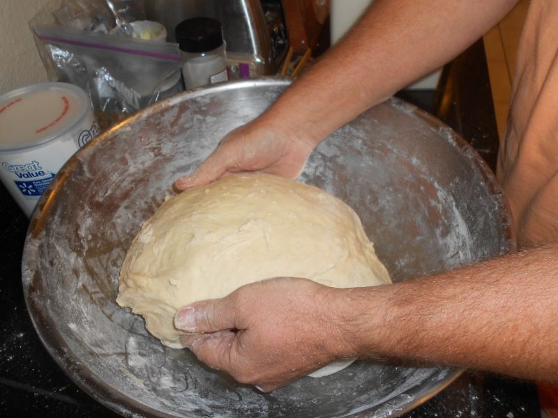 8. Punch down and knead lightly 2 to 3 minutes on a floured cutting board or cabinet.