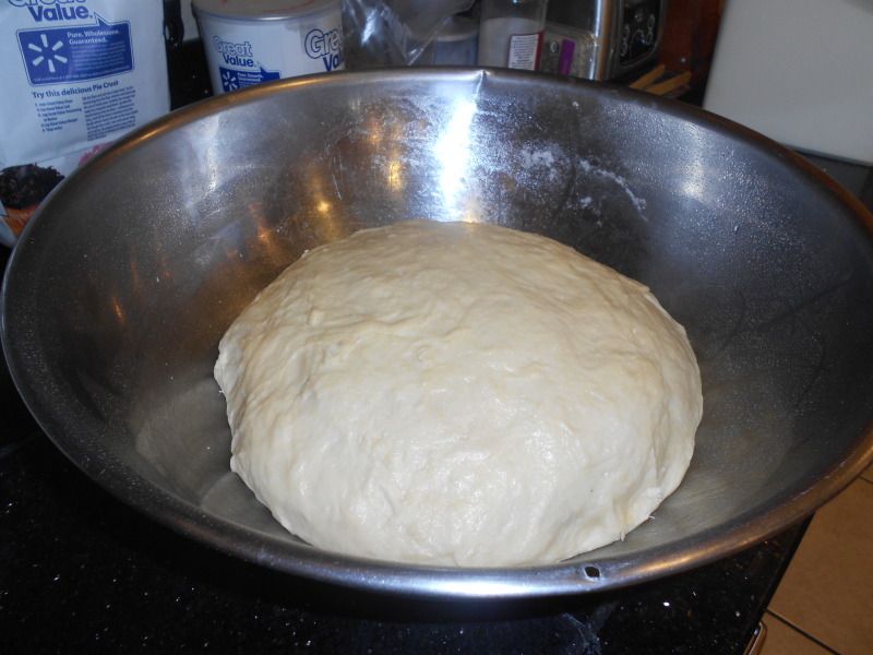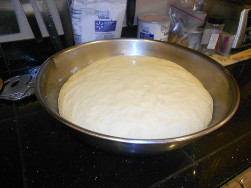 7. Place the dough into a greased bowl, cover it with a towel and set it in a warm spot until it doubles in bulk - about 45 minutes.