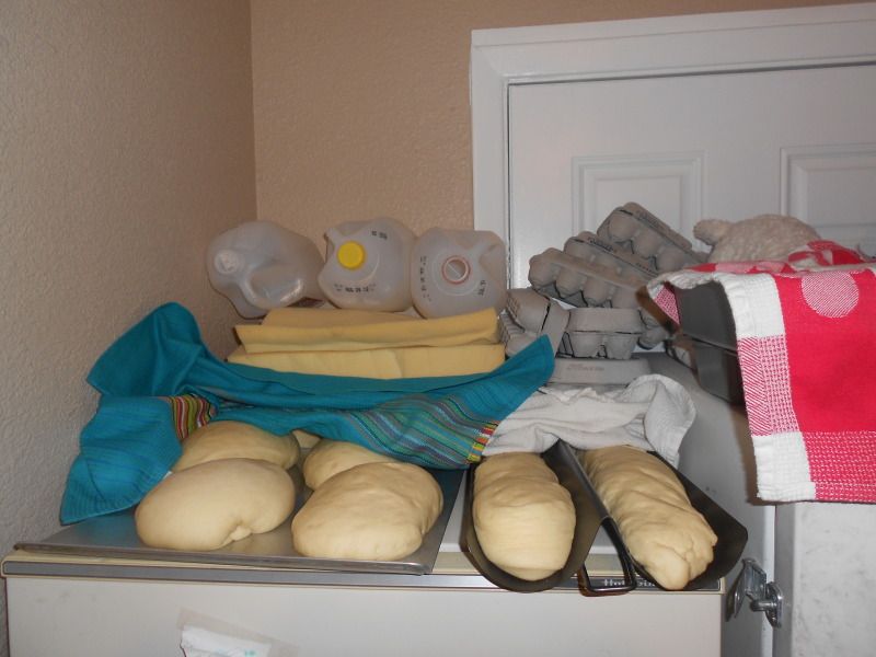 Our warm place is on top of our refrigerator. It's probably the best place to let your bread rise. Remember that heat rises, so the higher you can get your dough, the better it'll do.