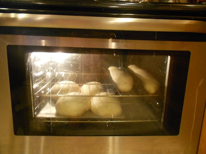 11. Bake in a 350ºF oven for 20 minutes or until the crusts are golden brown. When you knock on a loaf, it should sound hollow.