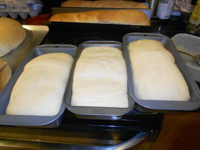 Now, you'll notice that you don't necessarily need a loaf pan to to make bread. If you make your loaves properly, you come up with some beautiful round loaves. We also had a french loaf pan sitting around that we finally got to use.