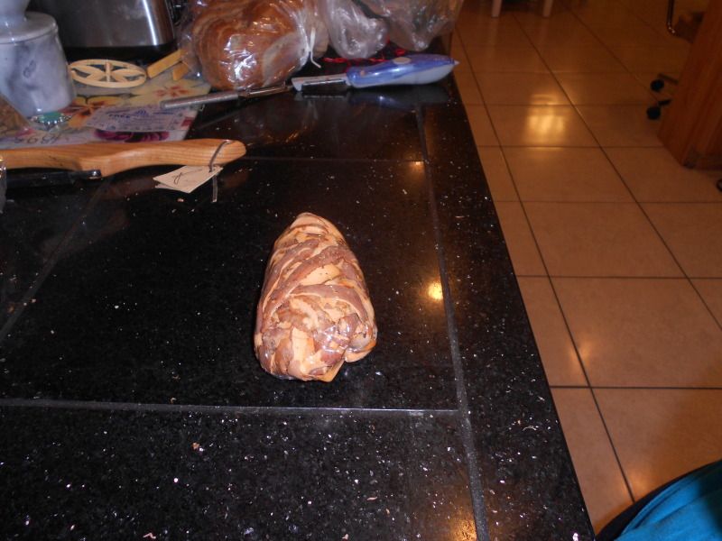 5. Bake for an hour to an hour and a half or until done in the middle. That means there's no pink left or a meat thermometer reads 155º F.